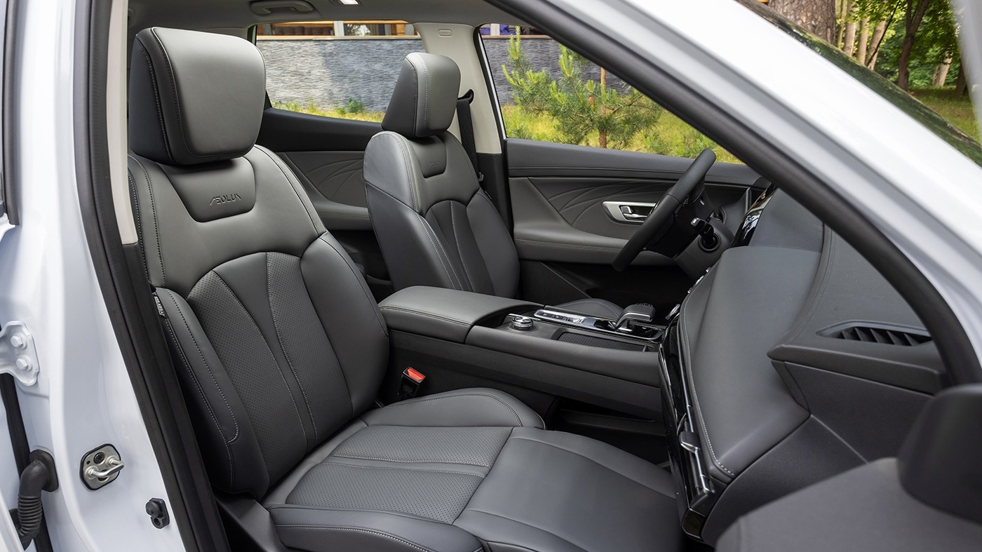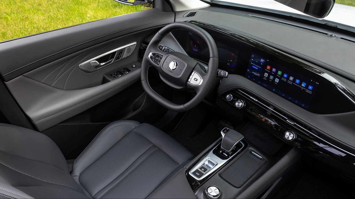 При габаритах 4720 × 1910 × 1702 мм и колёсной базе 2825 мм Dongfeng HUGE предлагает просторный салон, подходящий как для повседневных поездок, так и для дальних путешествий. Широкое водительское сиденье с шестью электрическими регулировками и рулевая колонка с настройкой по высоте и вылету обеспечивают удобную посадку. Трансмиссионный тоннель оборудован дополнительной нишей для хранения, а двойные контуры дверных уплотнителей повышают акустический комфорт и защищают от пыли.