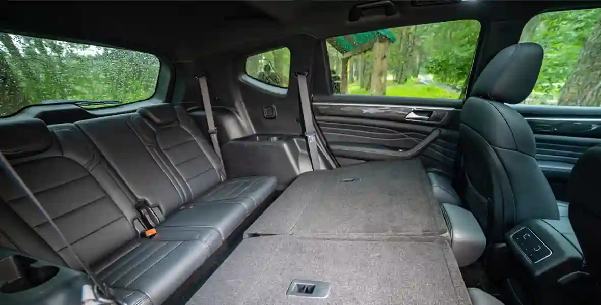 Что касается запаса пространства на двух задних рядах, его удобно варьировать, смещая продольно разрезной диван среднего ряда. Но, строго говоря, третий ряд зарезервирован в этой модели для детей и подростков.